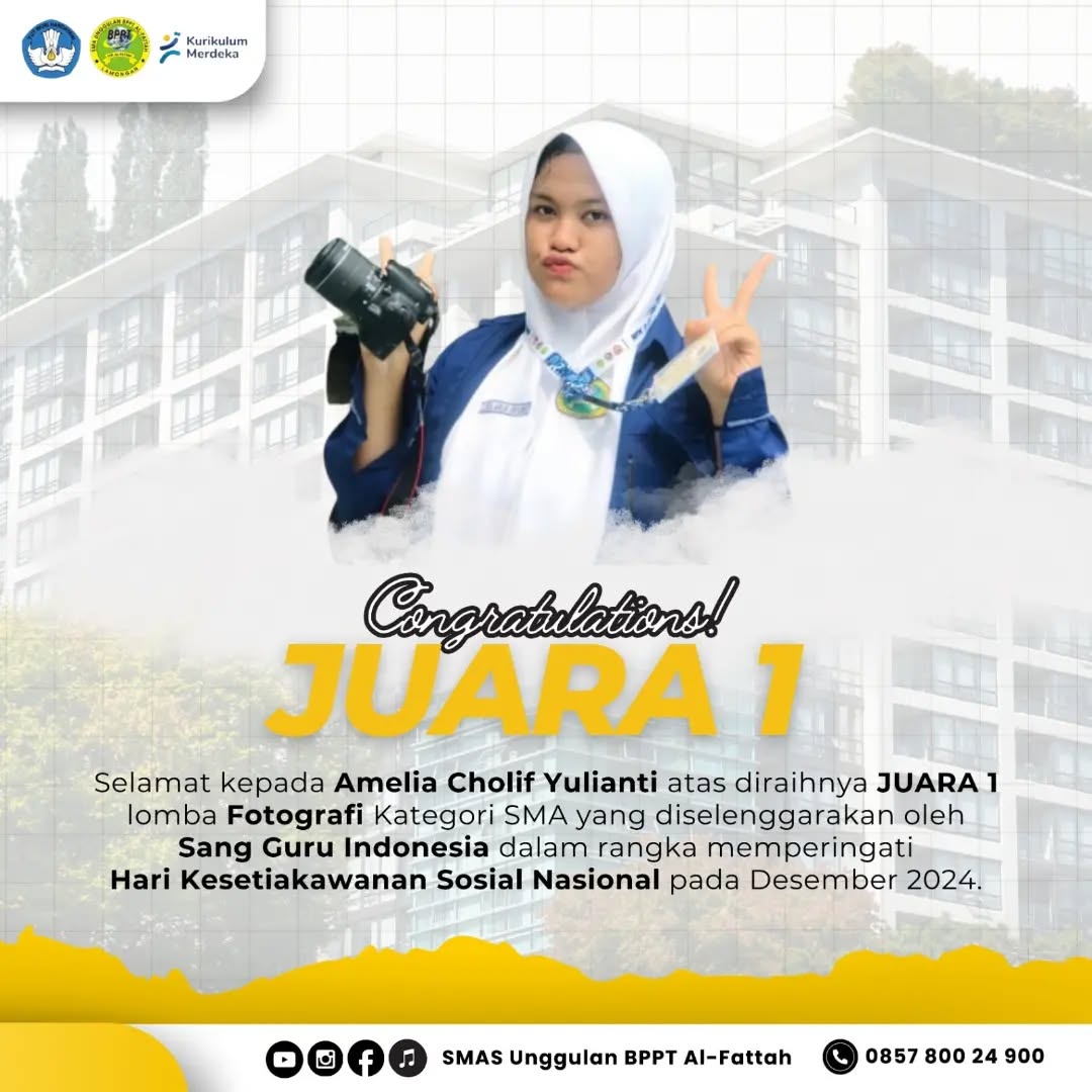 Selamat kepada Amelia Cholif Yulianti atas diraihnya JUARA 1 lomba Fotografi Kategori SMA yang diselenggarakan oleh Sang Guru Indonesia dalam